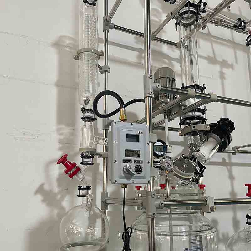 100L Reaktor Distilasi Kaca Multifungsi oleh Hefei Yangmai Technology Instrument Co., Ltd. adalah Dirancang untuk proses kimia kompleks seperti distilasi, refluks, dan sintesis. Sistem yang sangat terintegrasi ini memiliki beberapa komponen, termasuk reaktor kaca utama, beberapa kondensor, dan labu penerima. Seluruh sistem ini didukung oleh rangka baja tahan karat modular, yang menonjolkan fleksibilitas dan kemampuan adaptasinya untuk berbagai aplikasi industri dan skala pilot.