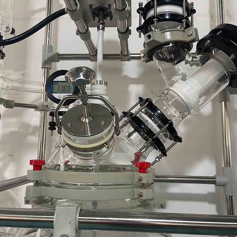 Reaktor Distilasi Kaca Multifungsi 100L dirancang untuk pemisahan kimia dan pemulihan pelarut yang efisien.